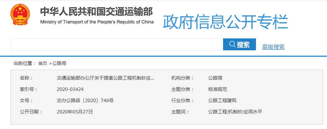 但是,今日機(jī)制砂行業(yè)迎來新的曙光,為解決河砂緊缺局面,交通運(yùn)輸部發(fā)布《交通運(yùn)輸部辦公廳關(guān)于提高公路工程機(jī)制砂應(yīng)用水平的通知》,對機(jī)制砂石質(zhì)量給出具體參考標(biāo)準(zhǔn),各地可結(jié)合實(shí)際情況在應(yīng)用過程中制定實(shí)施細(xì)則,不斷加強(qiáng)機(jī)制砂生產(chǎn)與應(yīng)用過程中的質(zhì)量管控,確保機(jī)制砂質(zhì)量。